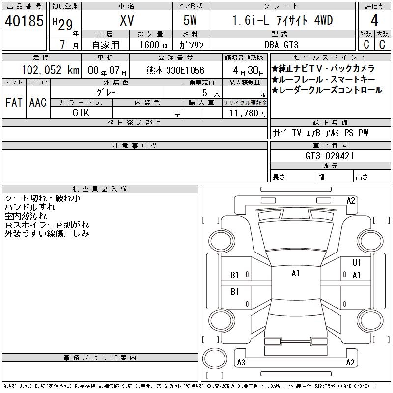SUBARU SUBARU XV - лот 40185