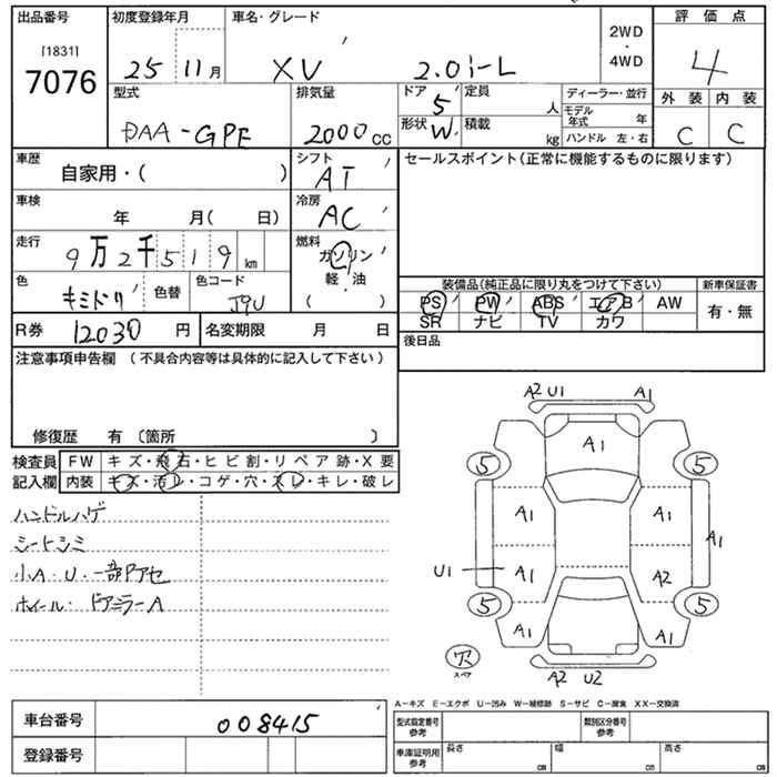 SUBARU SUBARU XV - лот 7076