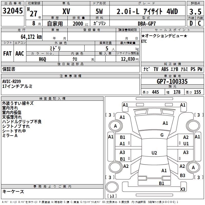 SUBARU SUBARU XV - лот 32045