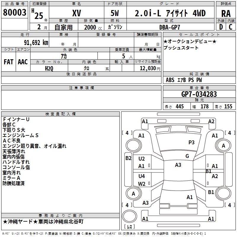 SUBARU SUBARU XV - лот 80003