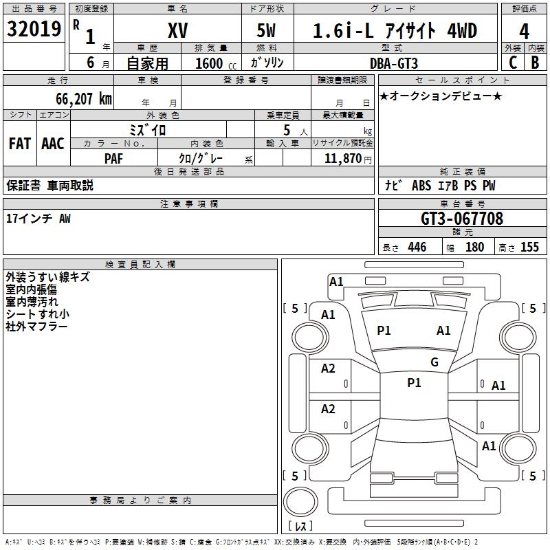 SUBARU SUBARU XV - лот 32019