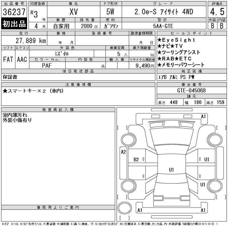 SUBARU SUBARU XV - лот 36237
