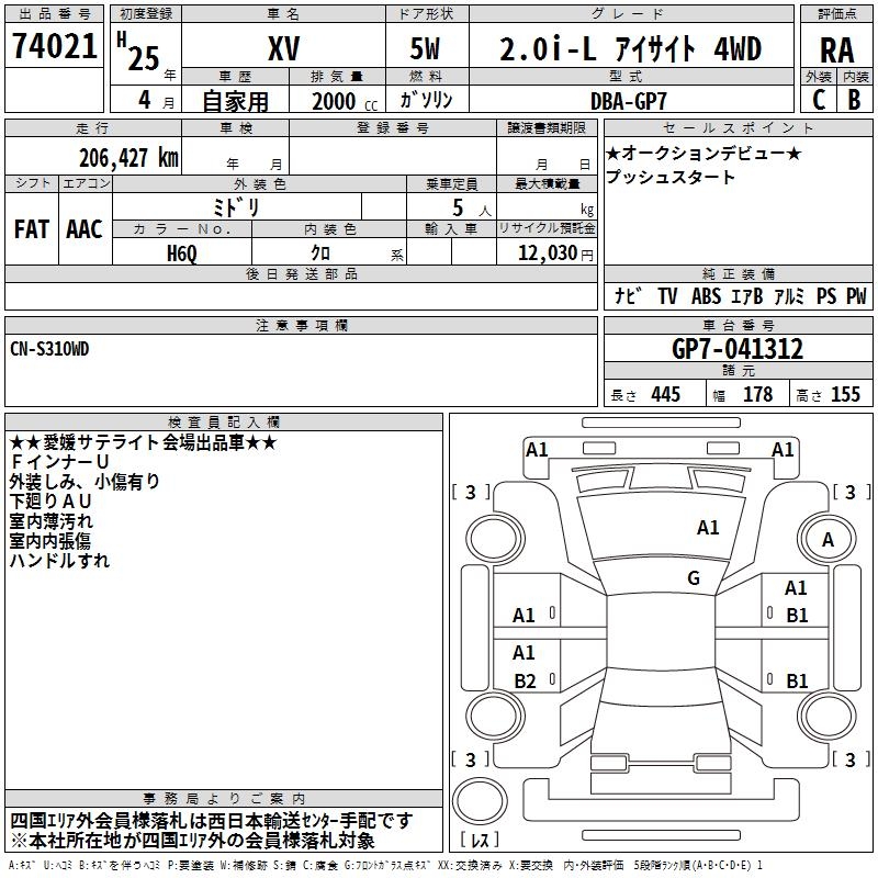SUBARU SUBARU XV - лот 74021