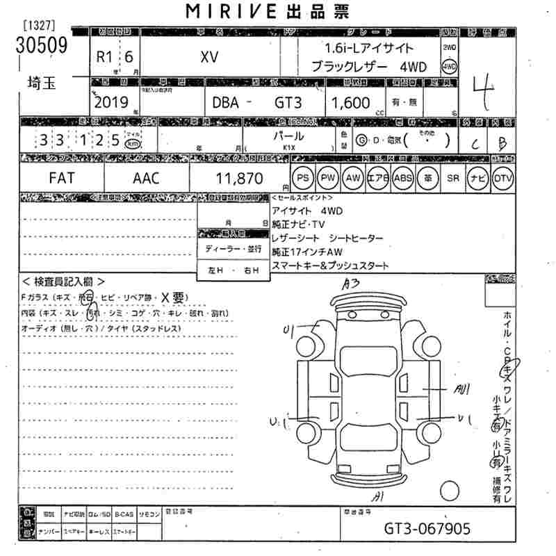 SUBARU SUBARU XV - лот 30509