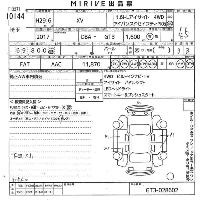 SUBARU SUBARU XV - лот 10144