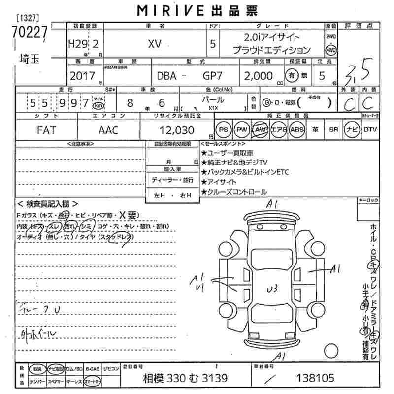 SUBARU SUBARU XV - лот 70227