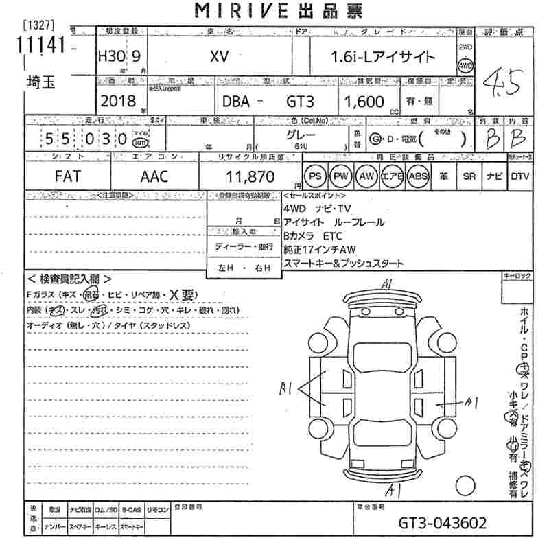 SUBARU SUBARU XV - лот 11141