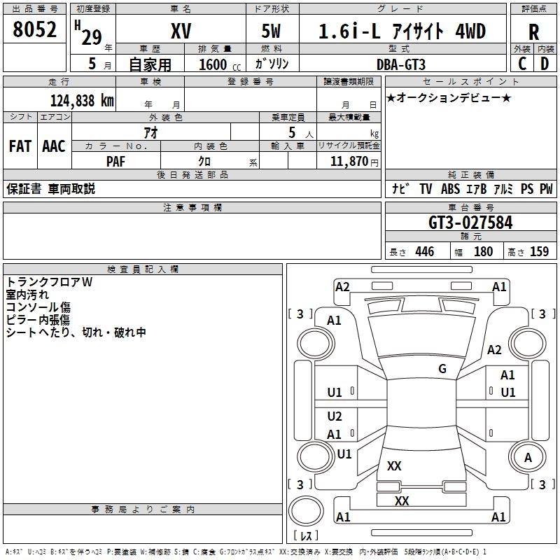SUBARU SUBARU XV - лот 8052