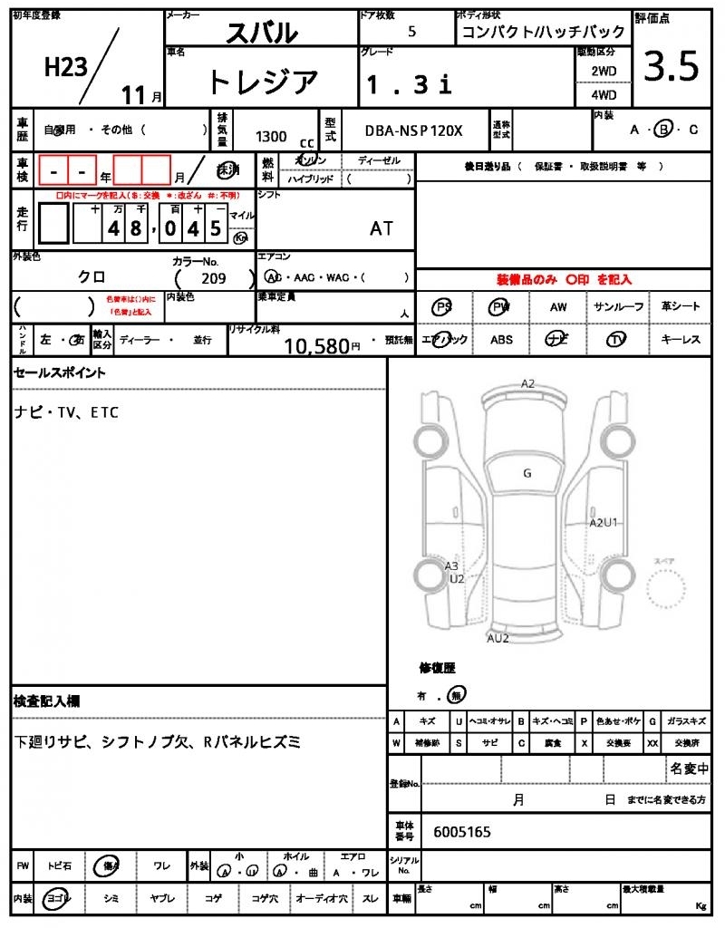 SUBARU TREZIA - лот 10780