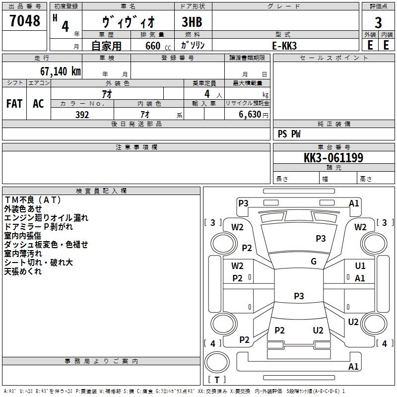 SUBARU VIVIO - лот 7048
