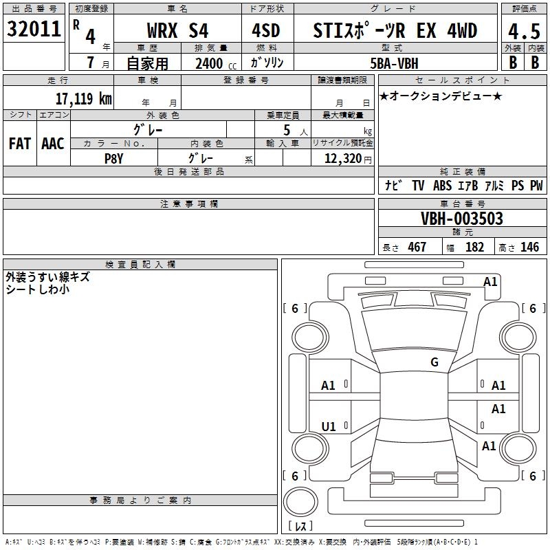 SUBARU WRX S4 STI SPORT R EX 4WD - лот 32011