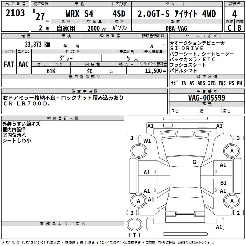 SUBARU WRX S4 2.0GT-S EYESIGHT 4WD - лот 2103