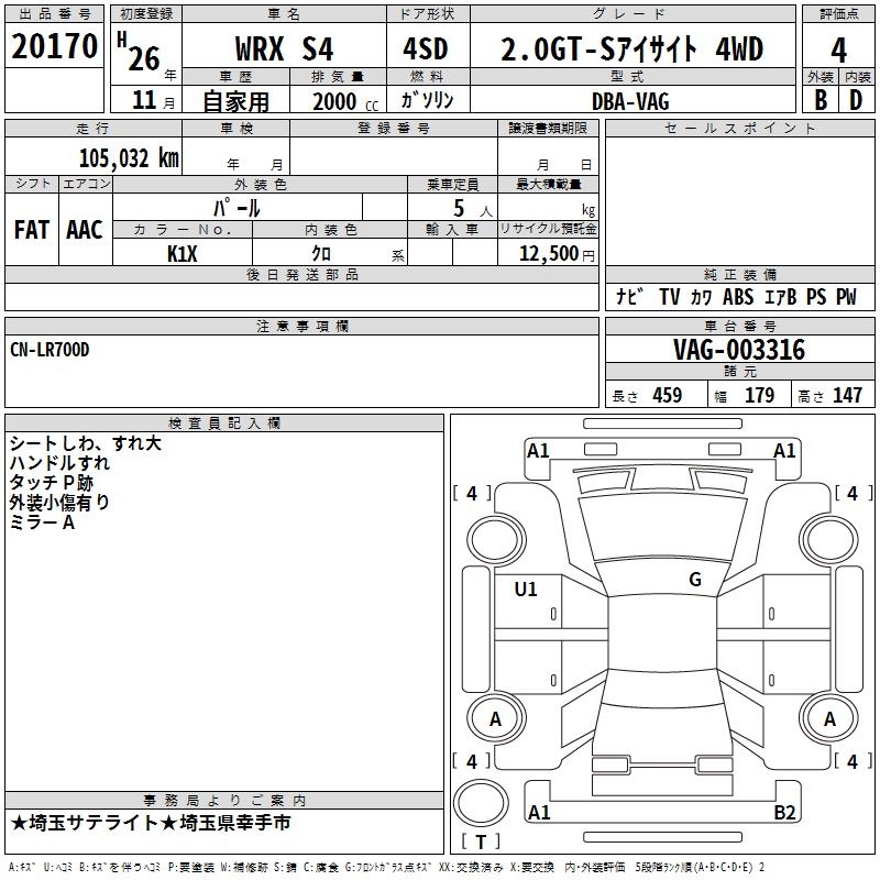 SUBARU WRX S4 2.0GT-S EYESIGHT 4WD - лот 20170
