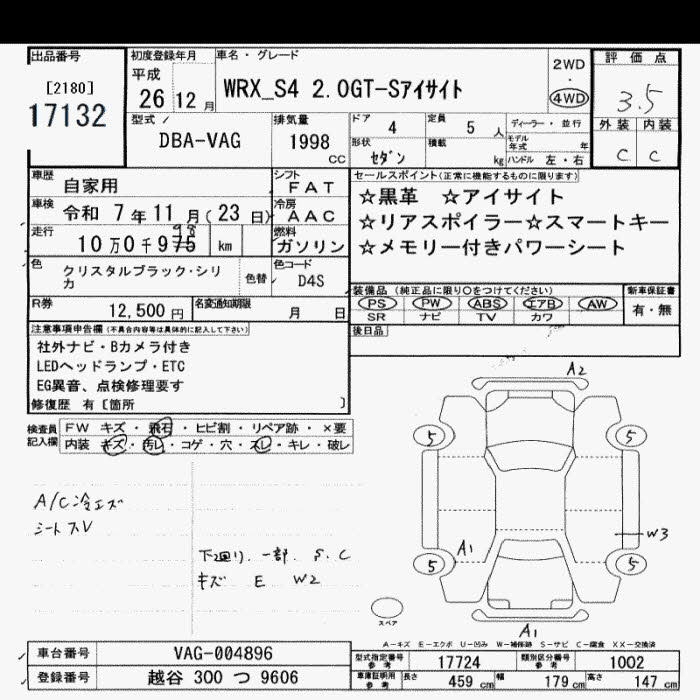 SUBARU WRX S4 4WD S4 2.0GT-S EYESIGHT - лот 17132