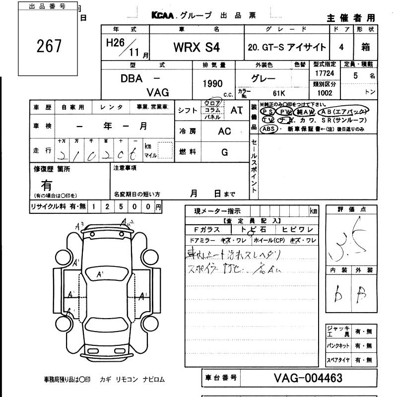 SUBARU WRX S4 2.0GT-S EYESIGHT - лот 267