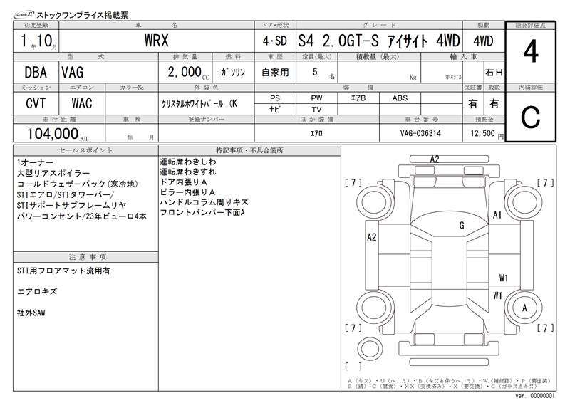 Все аукционы SUBARU WRX S4