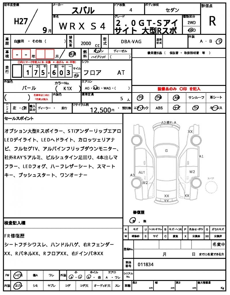 Все аукционы SUBARU WRX S4
