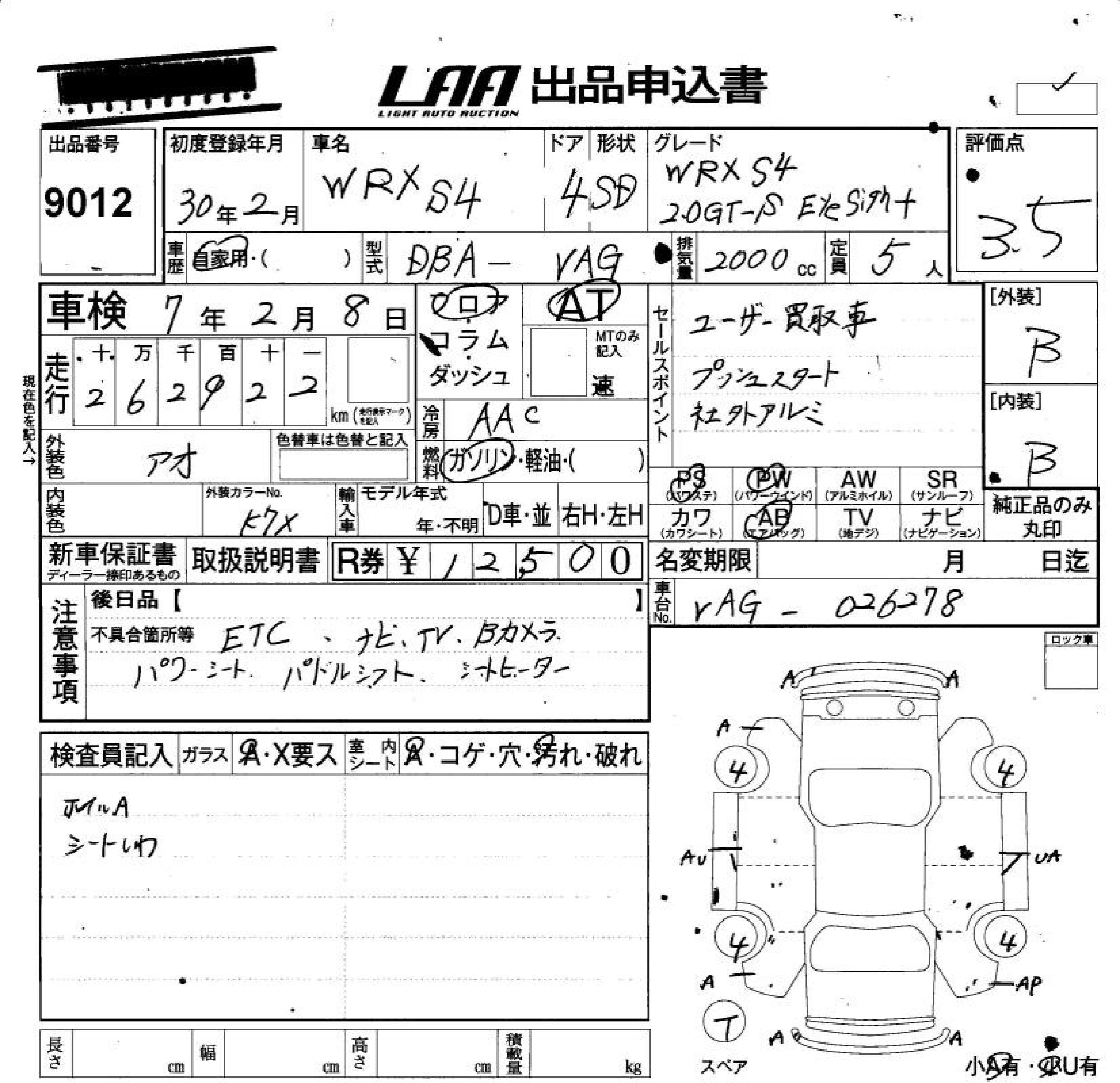 SUBARU WRX S4 - лот 9012