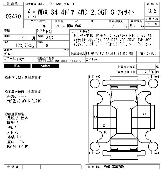 SUBARU WRX S4 - лот 3470