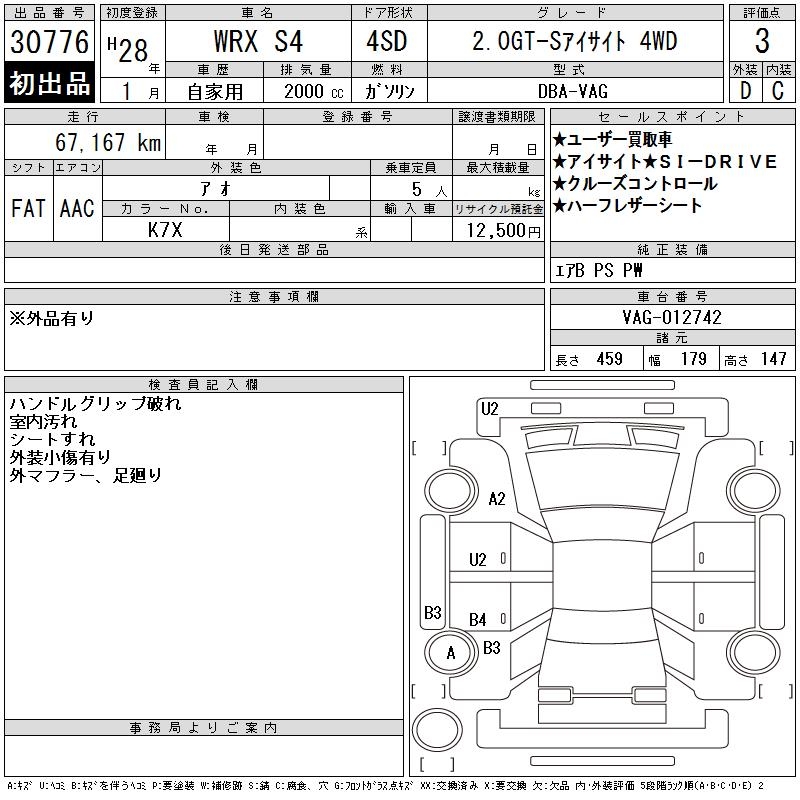 SUBARU WRX S4 2.0GT-S EYESIGHT 4WD - лот 30776