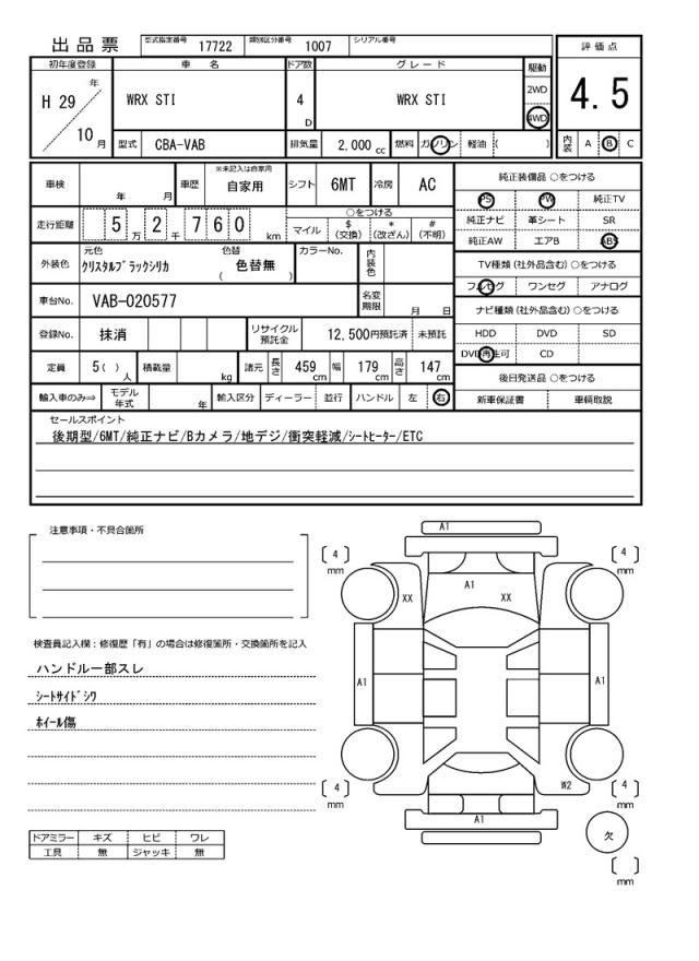 Все аукционы SUBARU WRX STI