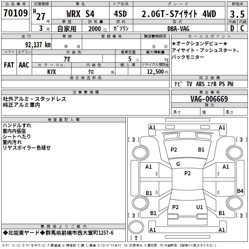 SUBARU WRX S4 - лот 70109