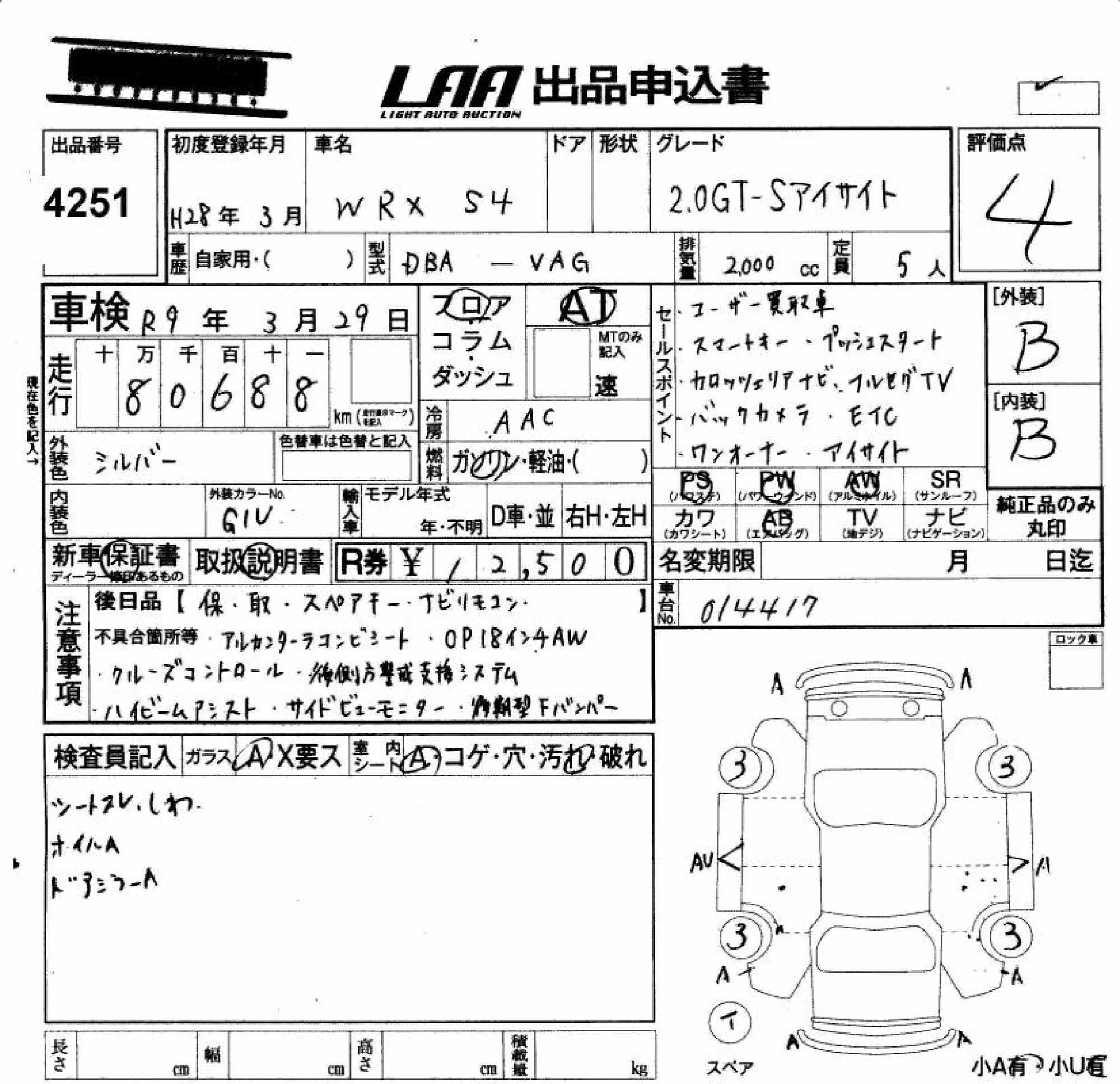 SUBARU WRX S4 - лот 4251