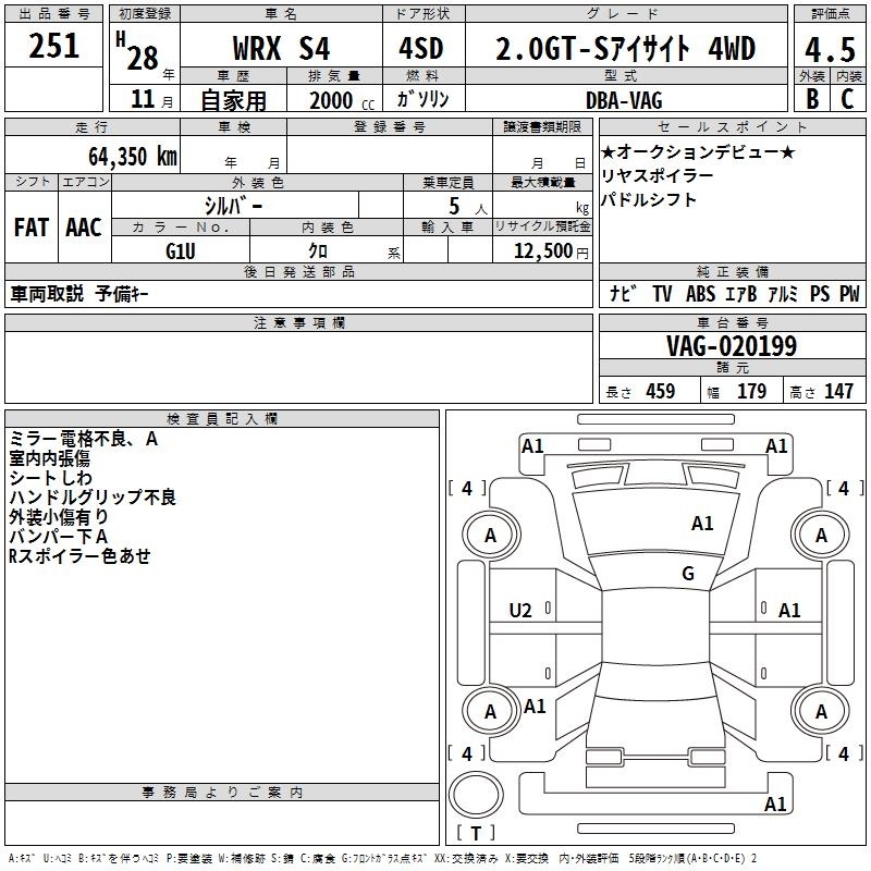 SUBARU WRX S4 - лот 251