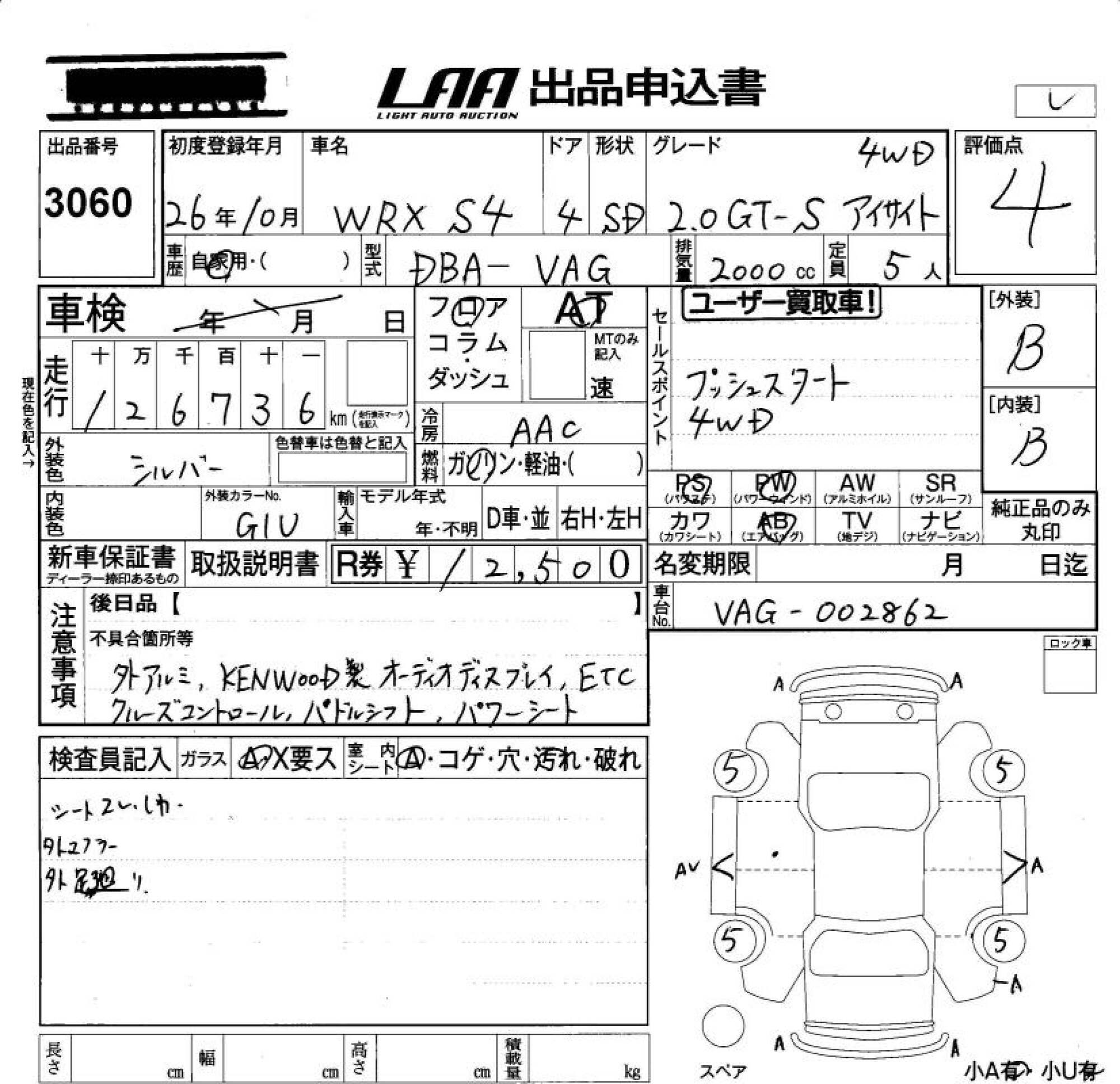 SUBARU WRX S4 - лот 3060