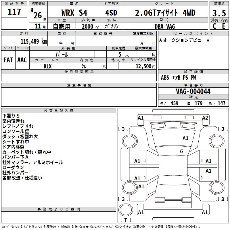 SUBARU WRX S4 - лот 117