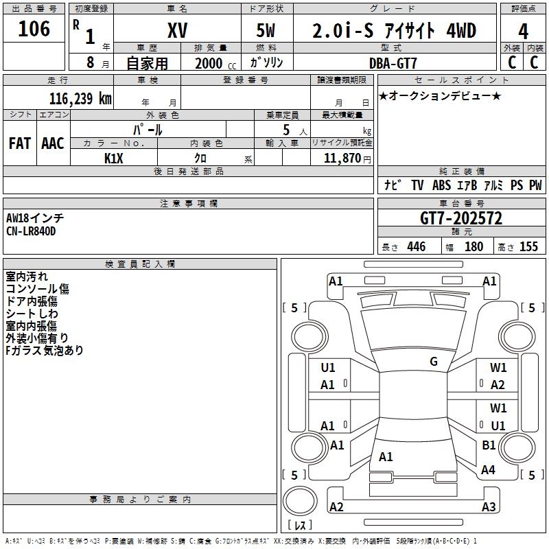 SUBARU XV 2.0I-S EYESIGHT 4WD - лот 106