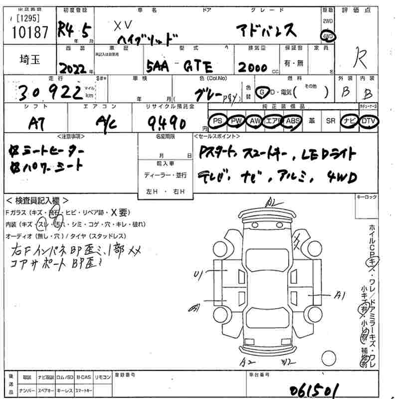 SUBARU XV ADVANCE - лот 10187