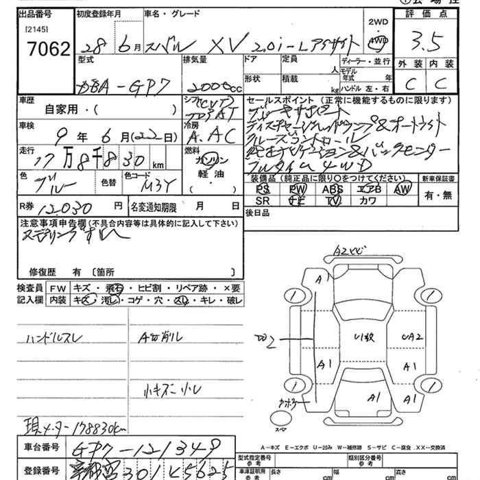 SUBARU XV 4WD 2.0I-L EYESIGHT - лот 7062