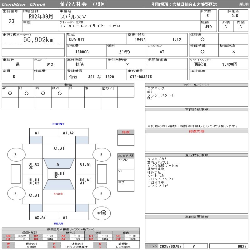 Все аукционы SUBARU XV