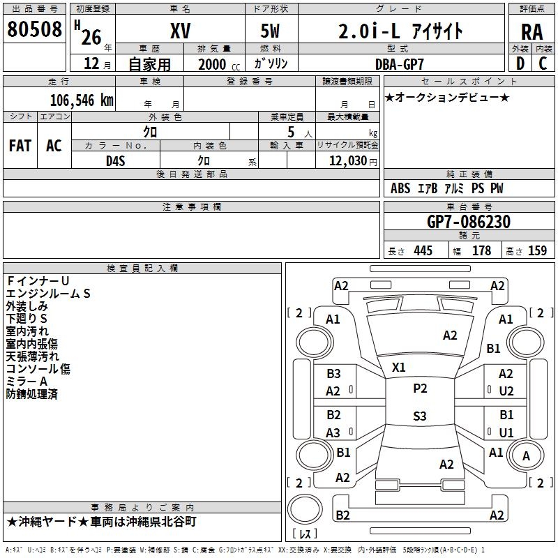 SUBARU XV 2.0I-L EYESIGHT - лот 80508