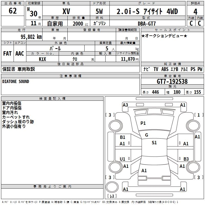 SUBARU XV 2.0I-S EYESIGHT 4WD - лот 62