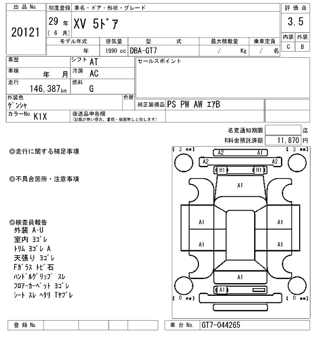 SUBARU XV - лот 20121