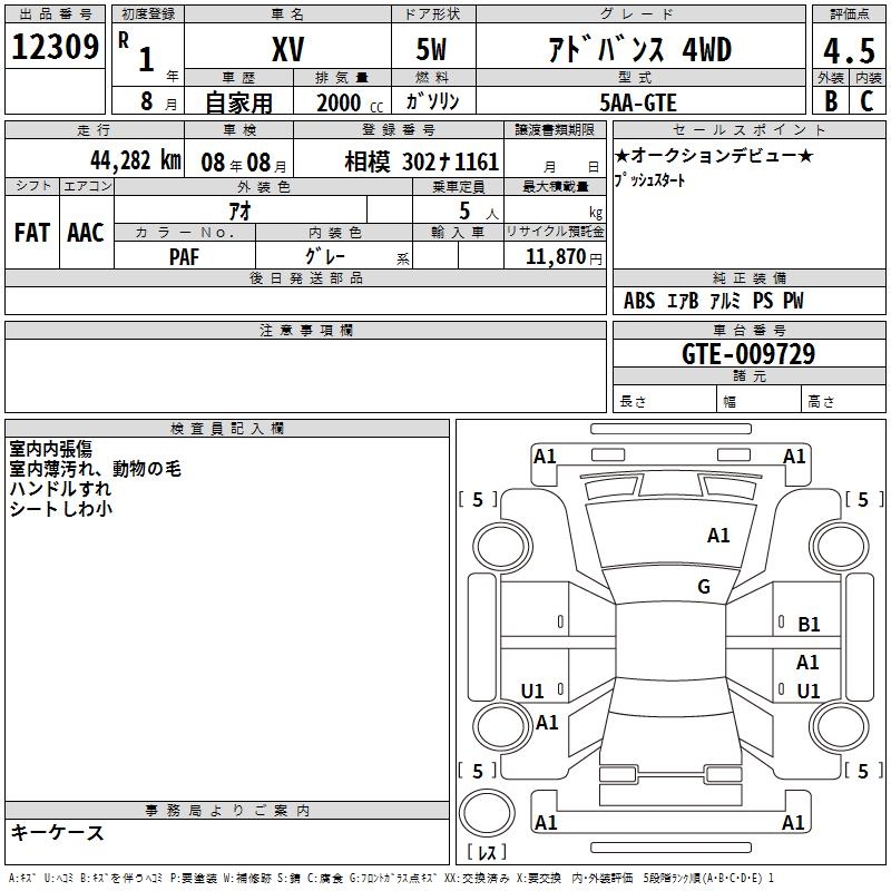 SUBARU XV ADVANCE 4WD - лот 12309