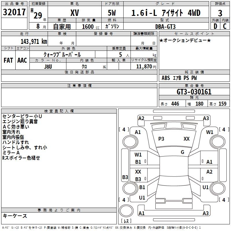 SUBARU XV 1.6I-L EYESIGHT 4WD - лот 32017