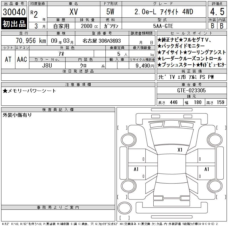 SUBARU XV 2.0E-L EYESIGHT 4WD - лот 30040