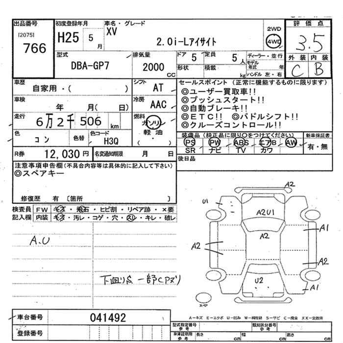 SUBARU XV 4WD 2.0I-L EYESIGHT - лот 766