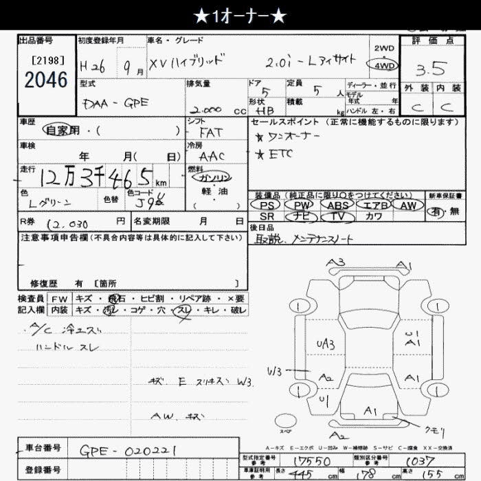 SUBARU XV 4WD HYBRID 2.0I-L EYESIGHT - лот 2046