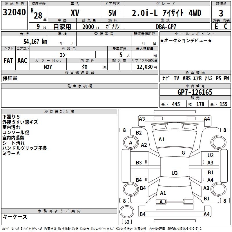 SUBARU XV 2.0I-L EYESIGHT 4WD - лот 32040