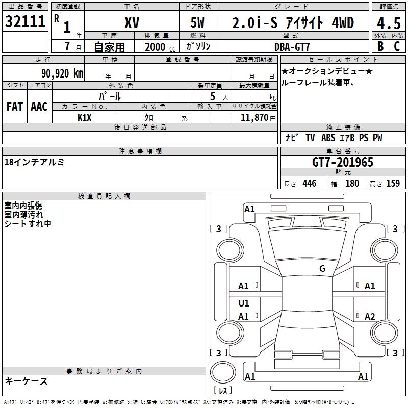 SUBARU XV 2.0I-S EYESIGHT 4WD - лот 32111