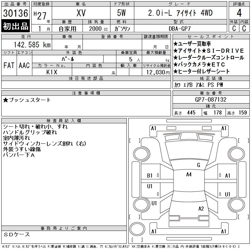 SUBARU XV 2.0I-L EYESIGHT 4WD - лот 30136