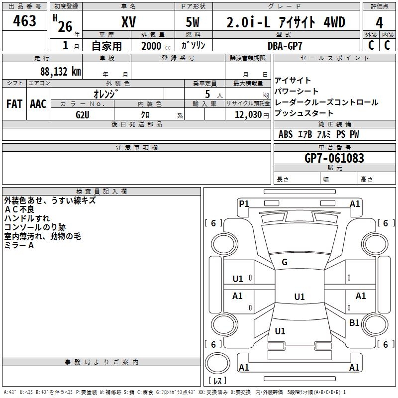 SUBARU XV 2.0I-L EYESIGHT 4WD - лот 463
