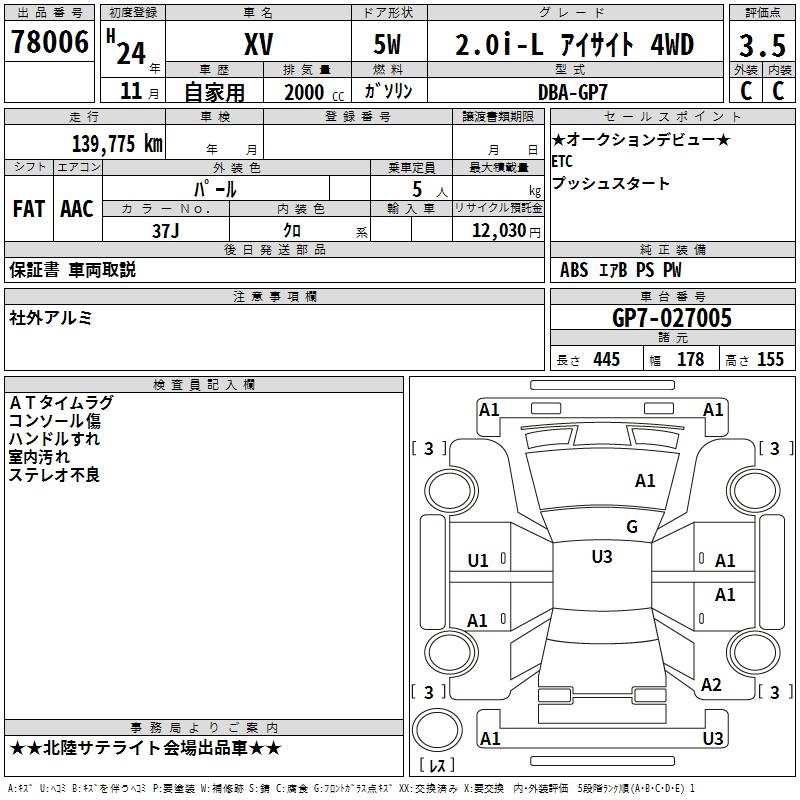 SUBARU XV 2.0I-L EYESIGHT 4WD - лот 78006