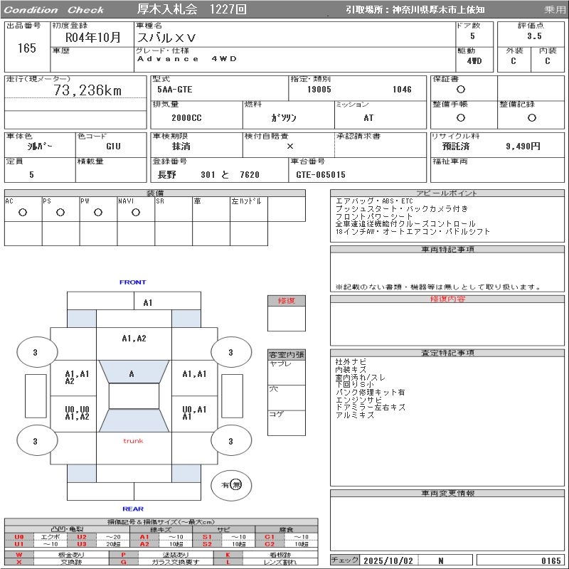 SUBARU XV Advance 4WD - лот 165