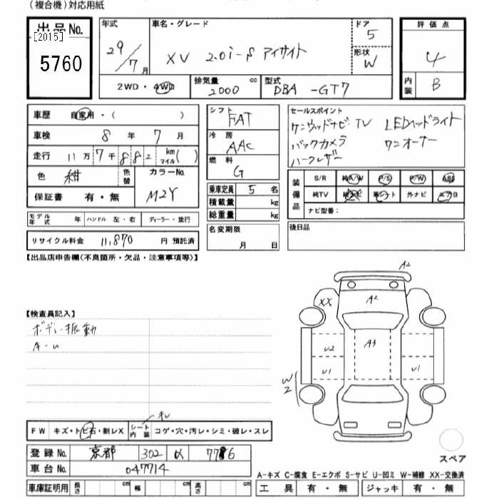 SUBARU XV 4WD 2.0I-S EYESIGHT - лот 5760