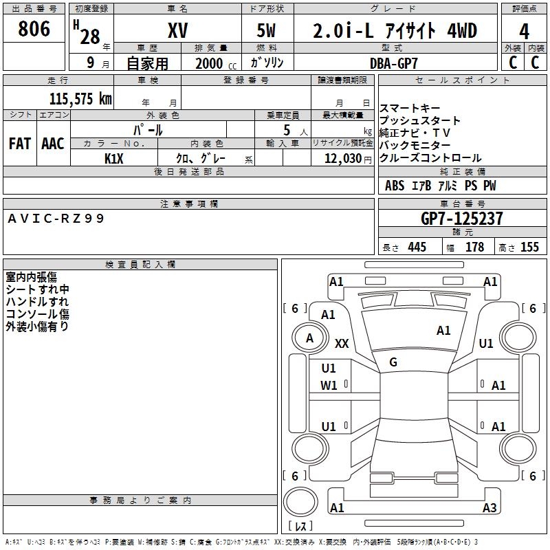 SUBARU XV 2.0I-L EYESIGHT 4WD - лот 806